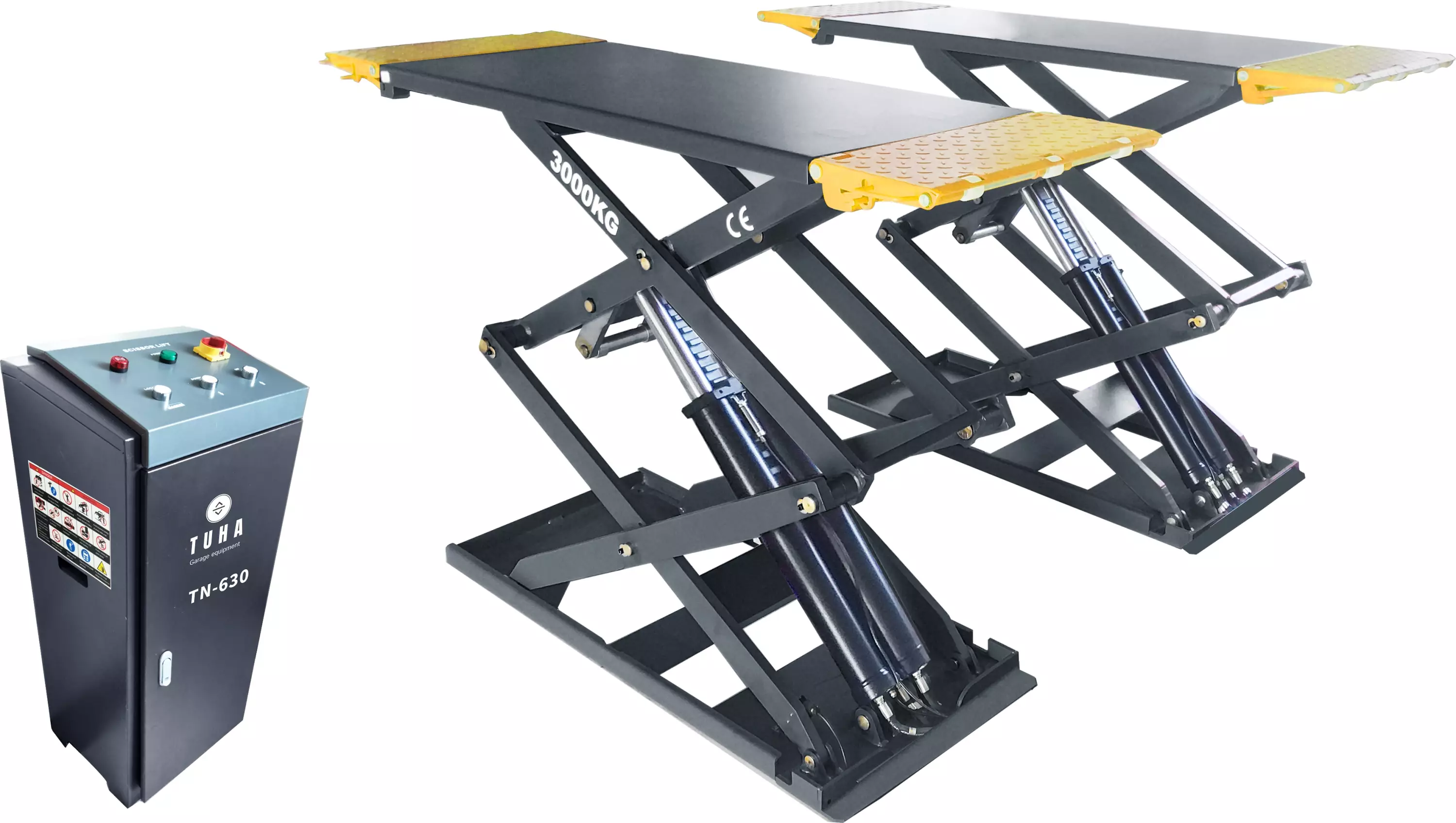 Hydraulitoiminen pinta-asennettava 3,0 tonnin pneumaattisesti avattavilla lukoilla varustettu kaksoissaksinostin,joka nostaa 185 cm korkeuteen. Edullinen ja vankkarakenteinen saksinostin, jossa on helppokäyttöinen ajosiltojen tasaus.
