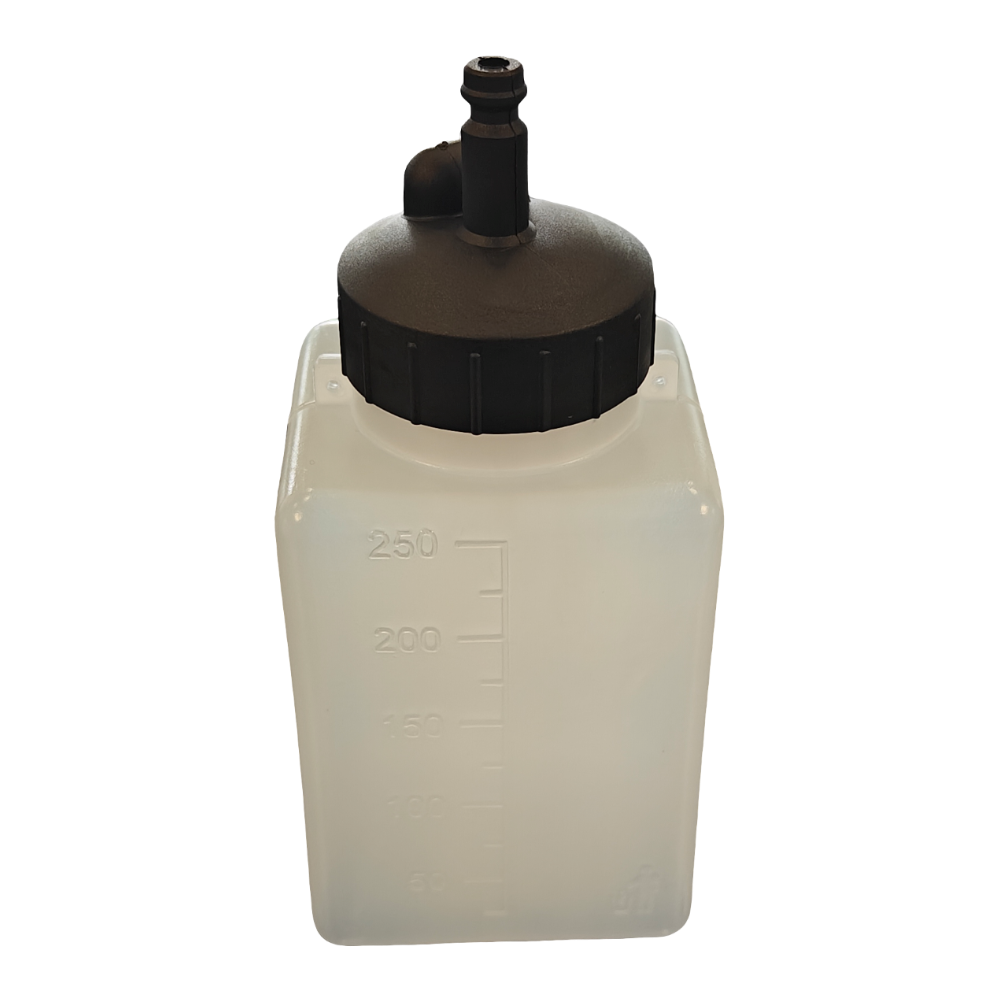 Käytetyn öljyn pullo. Käy ainakin Oksys ECOS 302 ja Agricold ilmastoinnin huoltolaitteisiin, joissa on OIL lock järjestelmä käytössä. HUOM! Älä käytä tätä pulloa uuden öljyn pullona, sillä tämä ei ole tiivis.