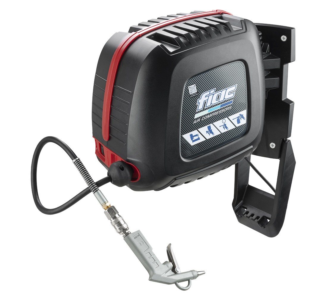 Kun tarvittavan ilman määrä ei ylitä 160 litraa minuutissa, on Fiac:n letkukelakompressori kaikista kätevin ratkaisu. Kytket pistokkeen vain 230 V pistorasiaan ja kiinnität laitteen seinään niin sinulla on valmis letkukela, josta tulee ilmaa aina, kun tarvitset sitä!