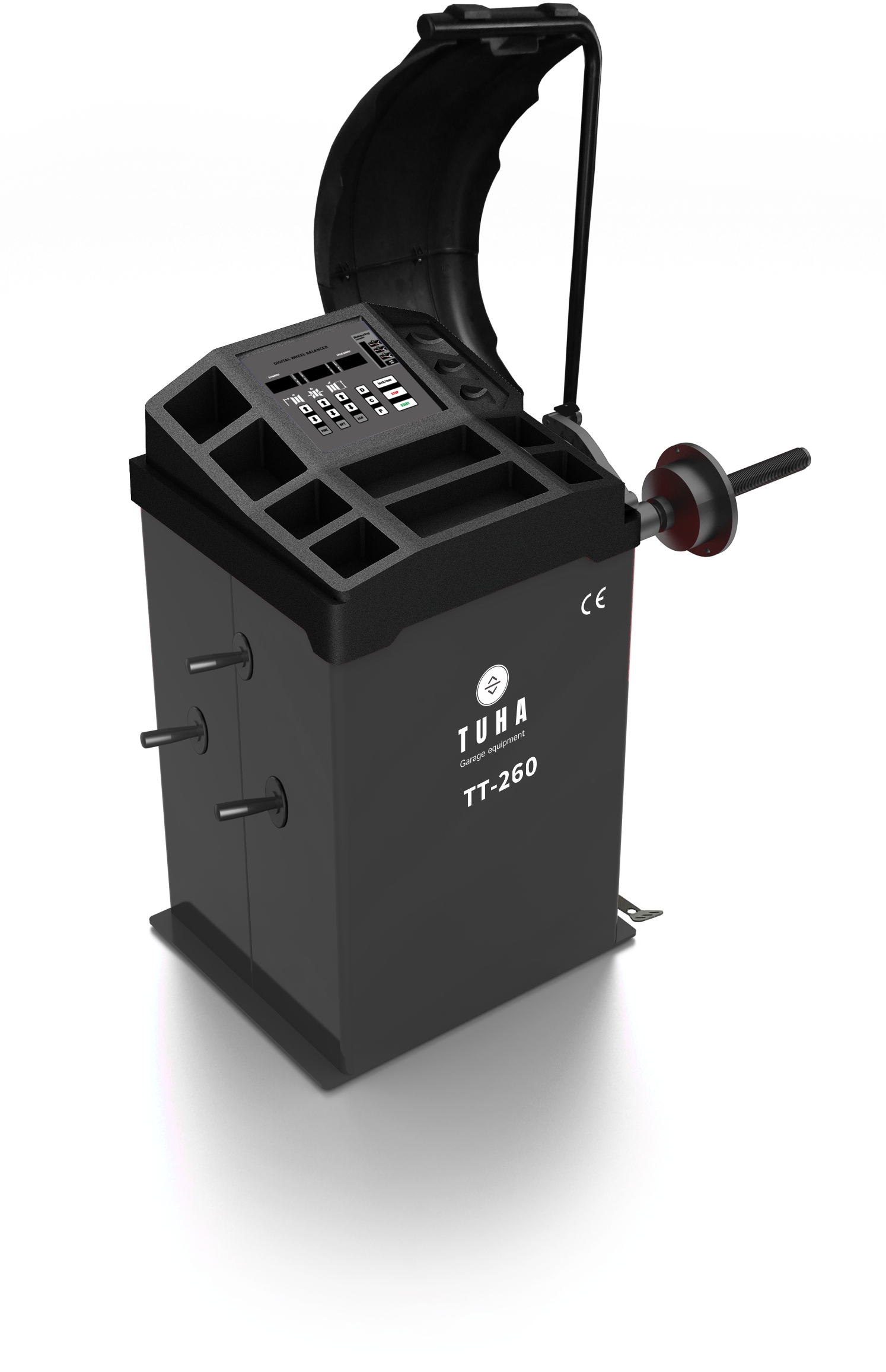 Keskitason tasapainotuskone, joka lukee alumiinivanteissa molemmat painon paikat automaattisesti ja peltivanteissakin halkaisijan ja sisäpuolen etäisyyden automaattisesti (pitää itse mitata ja syöttää vanteen leveys). Automaattijarrun lisäksi koneessa on jarrupedaali, jolla voit pitää renkaan lukittuna painon laitoin ajan.