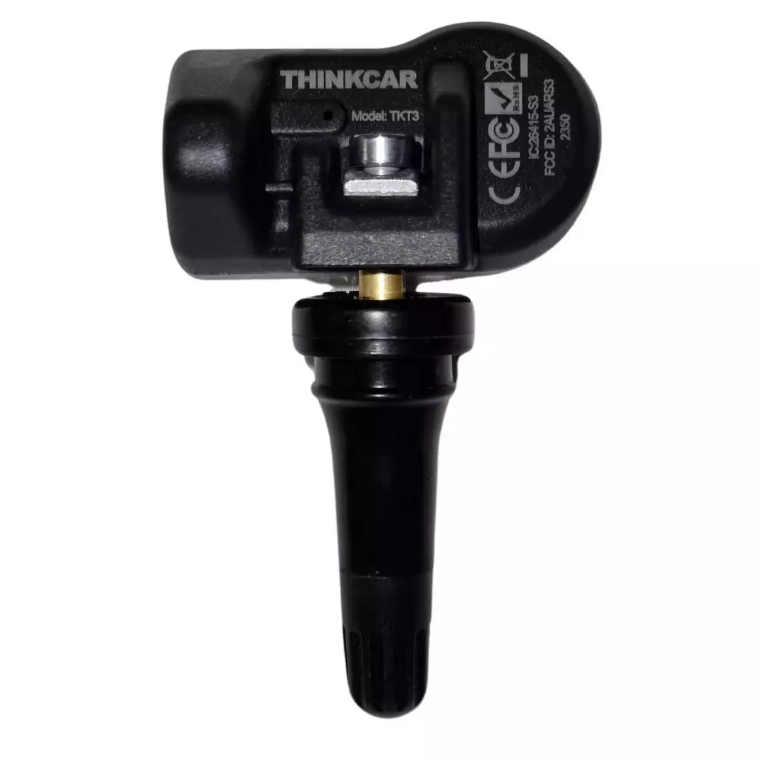 Ohjelmoitava TPMS-anturi kumisella venttiilillä. HUOM! Ohjelmointi anturille onnistuu ainoastaan ThinkCarin ThinkTool testereillä ja T-Wand laitteilla.